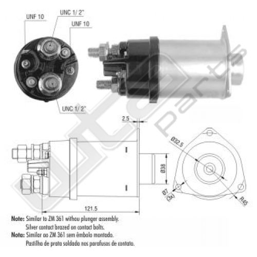 Startrelais ZM Massa vrij 24 volt zonderplunjer, SRLST186 met plunjer